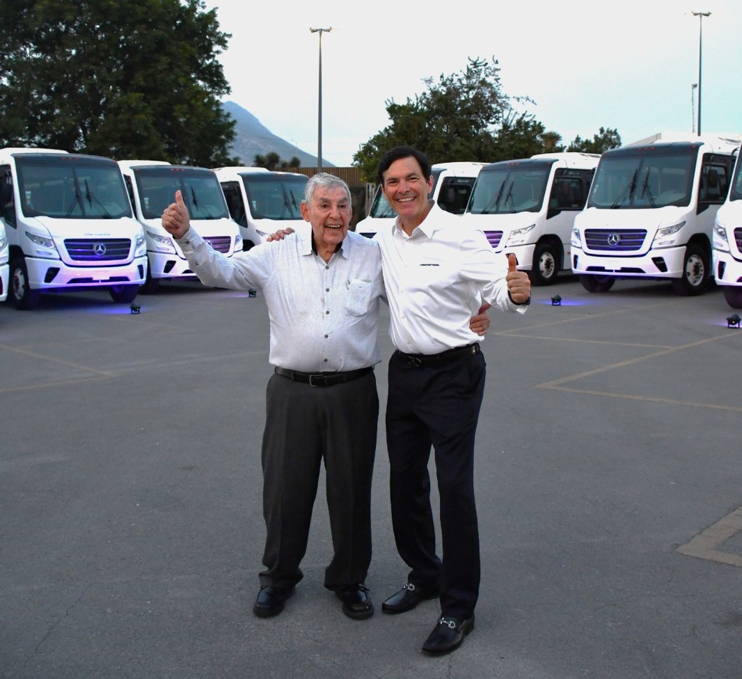 En esta entrega de gran importancia para la Mercedes-Benz Autobuses y Marcopolo tuvieron la presencia del Ing. Abelardo Osuna y su padre Don Abelardo Osuna ejemplos y referentes de empresarios comprometidos con la movilidad de este país.