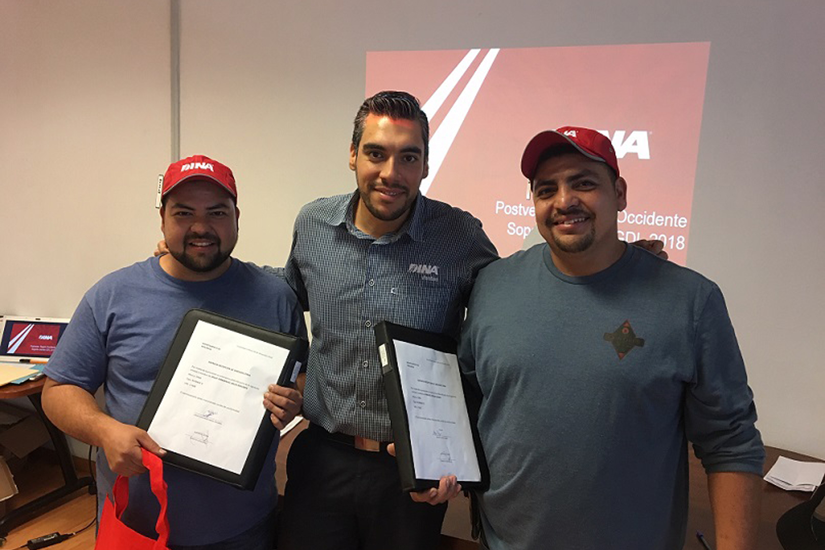En la entrega de los autobuses, que tuvo lugar en las instalaciones de la Alianza de Camioneros de Jalisco, participaron Hugo Higareda Macías, Presidente de Grupo Alianza, y Ernesto Ledezma Andalón. Por parte de DINA, asistieron Juan Carlos Suárez, Ingeniero de Postventa y Guillermo Padilla, Coordinador de Proyectos de Zona Occidente.