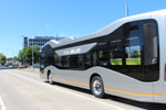 Se mantiene exactamente en el centro de su carril de 3,1 metros de anchura, sin separarse nunca más de 20 cm a la izquierda o a la derecha, incluso a la velocidad máxima. En esto supera claramente la capacidad de cualquier conductor real. En los túneles iluminados, en donde no existe señal del GPS, el autobús se orienta con seguridad por el entorno, utilizando las imágenes registradas por las cámaras de localización visual.