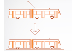 Gracias a un innovador sistema de accionamiento eléctrico, la energía desde los equipos de recarga instalados en el techo puede ser almacenada en baterías compactas, así como la energía requerida para frenar el vehículo y accionar tanto el autobús y sus servicios auxiliares, como la iluminación interior.