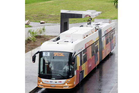 La nueva tecnología de recarga fue presentada por primera vez en un autobús eléctrico de alta capacidad, transportando hasta 135 pasajeros. El autobús será recargado directamente en paradas seleccionadas por quince segundos mientras los pasajeros suben y bajan del autobús, basado en un nuevo mecanismo automático de recarga ultrarrápida. El proyecto piloto corre entre el aeropuerto de Ginebra y el Centro Internacional de Exhibiciones de la ciudad, Palexpo.