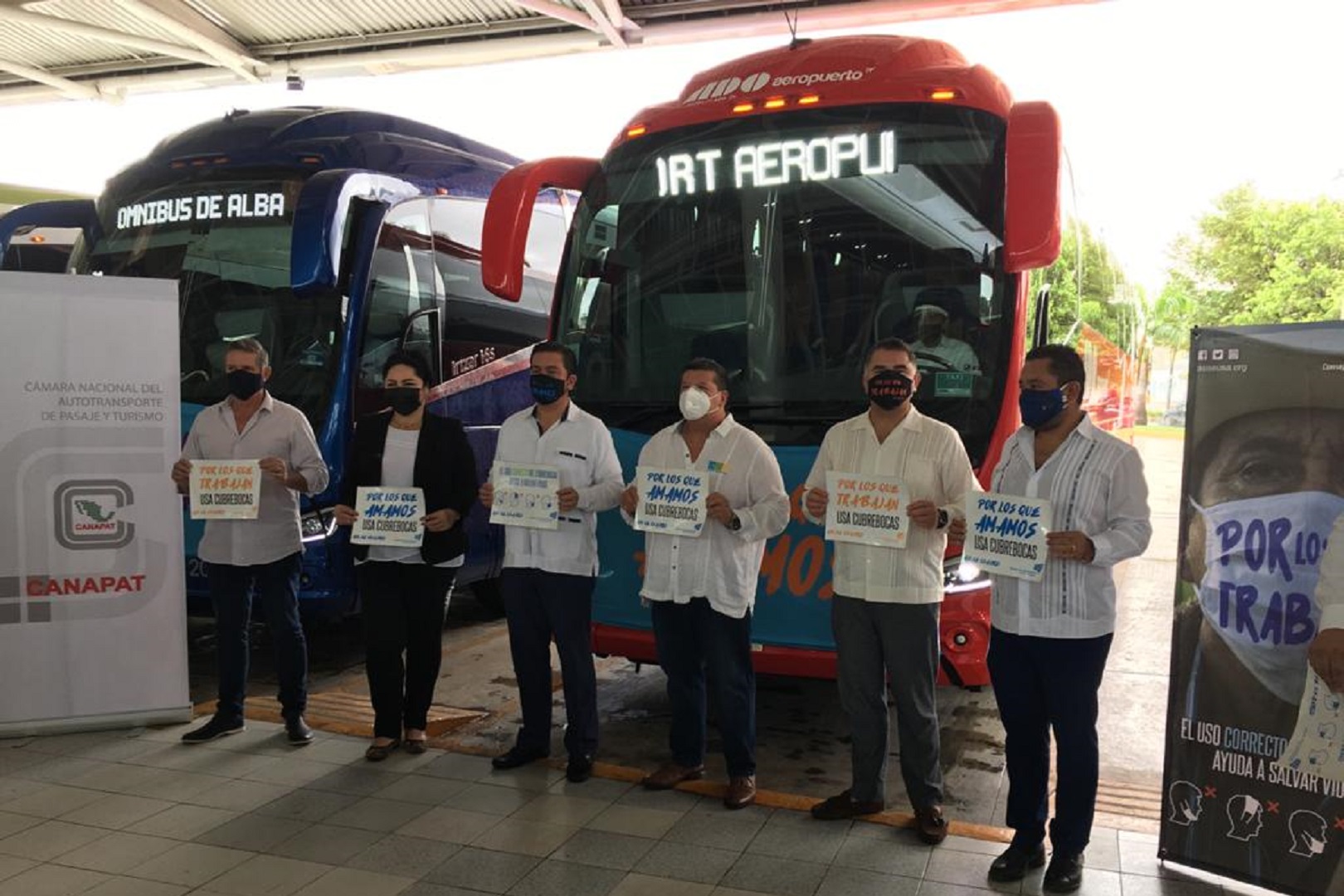 En la Central de Autobuses de Cancún, la Cámara Nacional del Autotransporte de Pasaje y Turismo (Canapat) y el Consejo de la Comunicación, dieron a conocer su alianza para promover el uso correcto del cubrebocas entre sus pasajeros a través de la actividad Transporte Seguro.