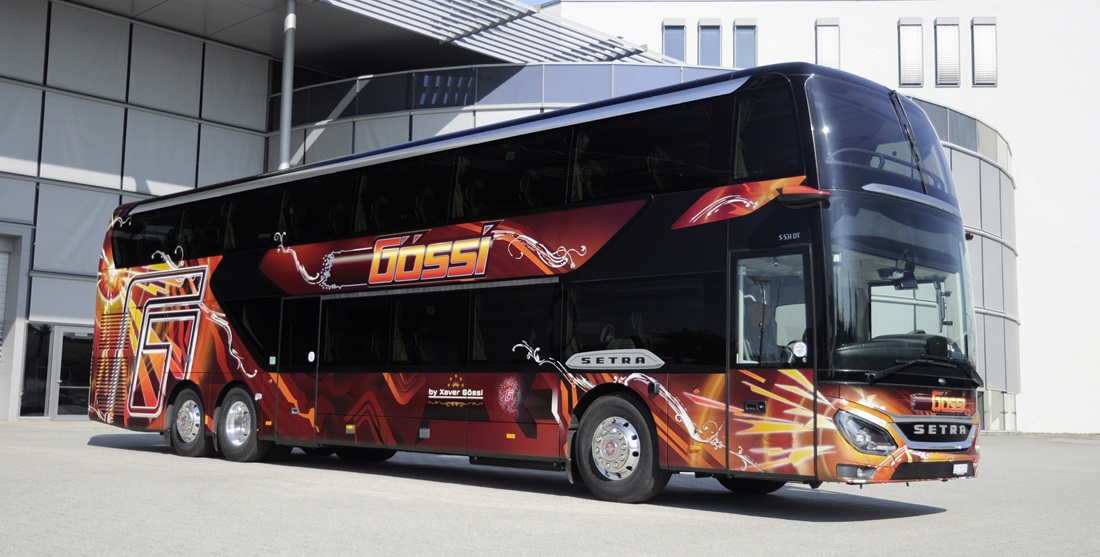 Para celebrar su 50 aniversario, Gössi Carreisen ha incorporado a su flota un nuevo autocar de dos pisos Setra S 531 DT, un homenaje al fundador de la empresa, Xaver Gössi, fallecido en 2013. Reconocido por el diseño distintivo del modelo predecesor, su sello permanece en los contornos curvos que ahora decoran tanto el exterior como el interior del nuevo vehículo, visibles incluso en detalles como el mobiliario de la cocina en la cubierta inferior y la zona de asientos superior.
