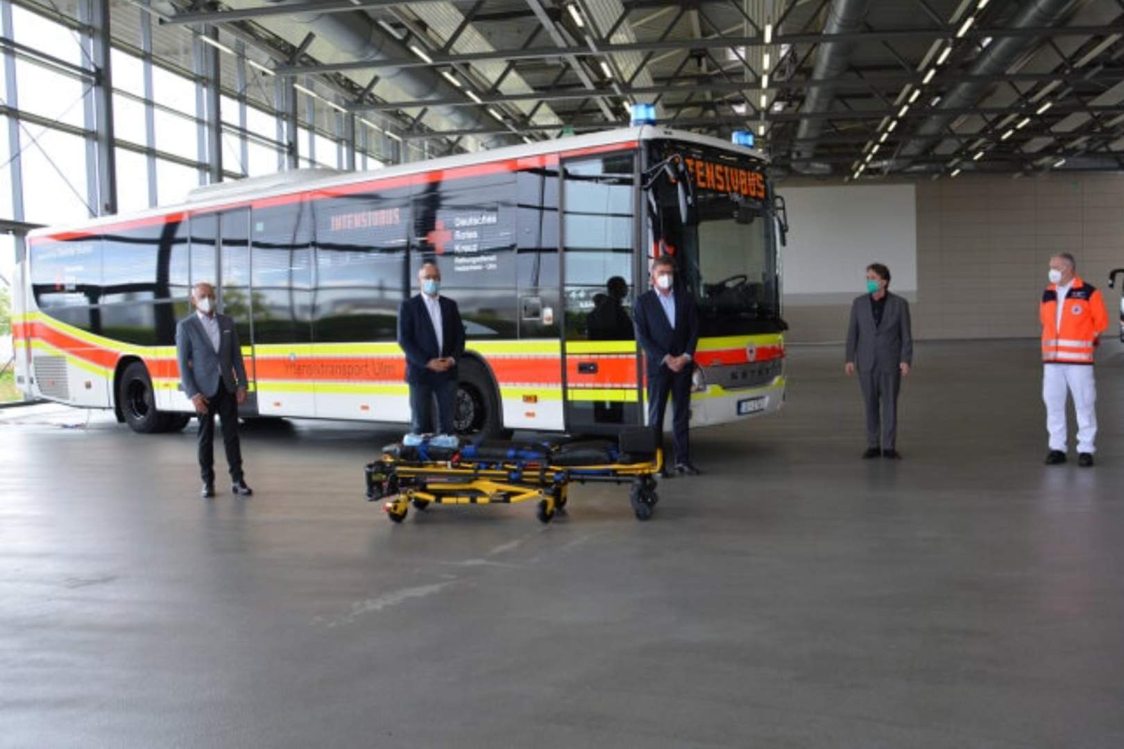 El modelo S 415 LE del Setra MultiClass se utiliza como ambulancia de cuidados intensivos de alta capacidad para transportar a pacientes con Covid-19 en Ulm, Alemania.