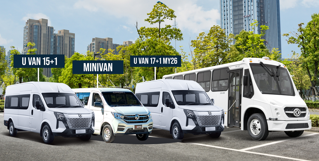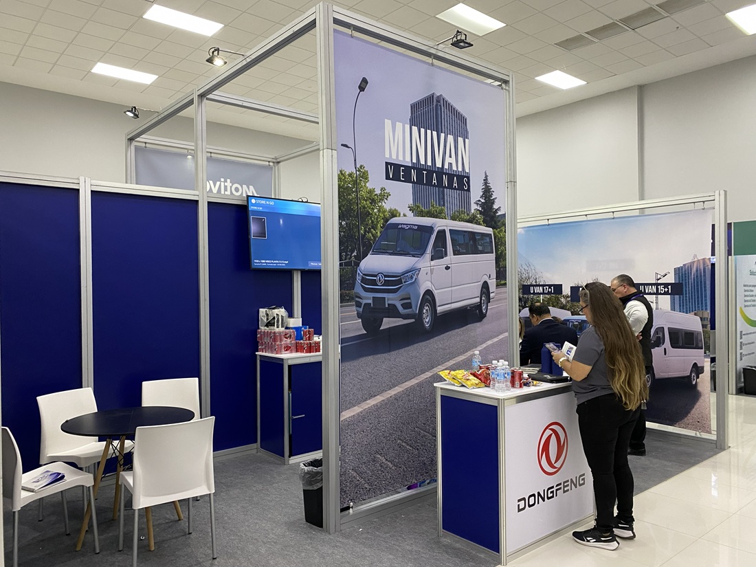 Como parte de su exhibición, Dongfeng destaca modelos clave de su portafolio para el traslado de pasajeros.