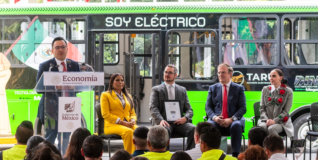 Taruk, el primer y único autobús eléctrico mexicano desarrollado por MegaFlux, empresa 100% mexicana, en colaboración con DINA, recibió oficialmente la certificación “Hecho en México”, durante un evento encabezado por el Secretario de Economía, Marcelo Ebrard. Esta certificación refuerza el compromiso de la empresa con la industria nacional y la sostenibilidad, destacando su labor como líder en el sector de la electromovilidad en el país.