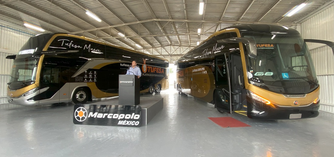En la planta de Marcopolo México en García, Nuevo León, se realizó la entrega oficial a Autotransportes TUFESA de los nuevos autobuses Marcopolo G8, modelos Paradiso 1800 DD y Paradiso 1350 con plataforma Volvo Euro 6.
