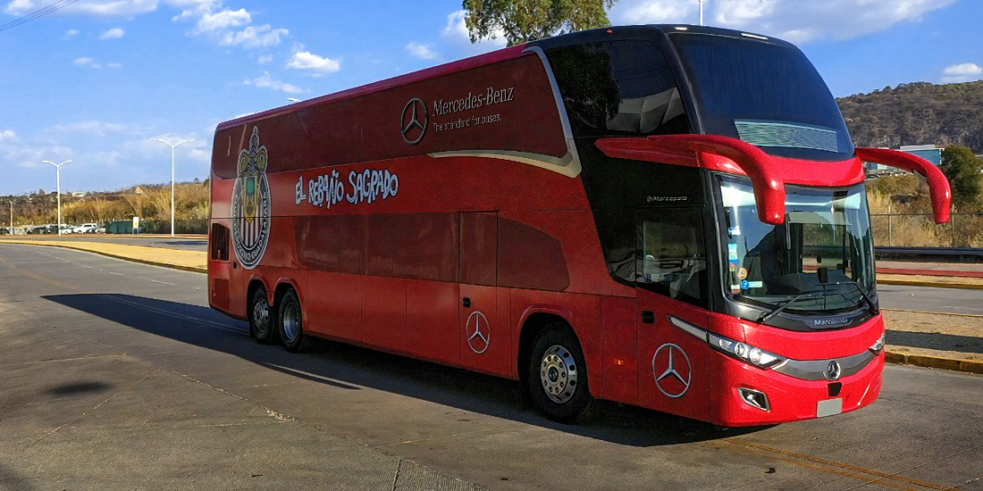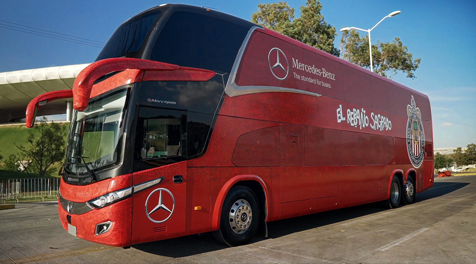 El equipo de las Chivas llegará al Estadio Akron en Guadalajara y a sus encuentros fuera de la ciudad, en un flamante autobús Mercedes-Benz, totalmente diseñado a las necesidades del equipo en rubros como seguridad, confort, adaptabilidad y conectividad, como lo hizo desde hace 8 años.