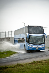 La tercera prueba fue CURVA CERRADA entrar a curva cerrada a una velocidad de 80 km/hr para obligar al autobús a que por medio del ESP detecte alguna inestabilidad y lo regule. Sin el sistema ESP las probabilidades de volcadura en estas condiciones serían inmensas.