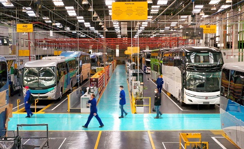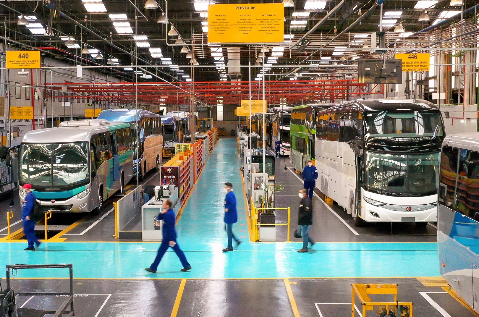 En relación a los resultados del primer trimestre de este año, los segmentos de mejor desempeño fueron el carretero y el urbano, que lograron un crecimiento de más del 50% en comparación con el mismo periodo de 2019, tanto en ingresos como en producción. En el segmento de carreteros, el aumento se estaba recuperando de la menor demanda de principios de 2019, afectada negativamente por la entrada en vigor de una norma que exigía la instalación de ascensores en todos los modelos de este segmento vendidos en el Brasil. El segmento urbano mantuvo su trayectoria de recuperación de volumen en el mercado interno, ayudado por las entregas al programa federal Caminho da Escola.