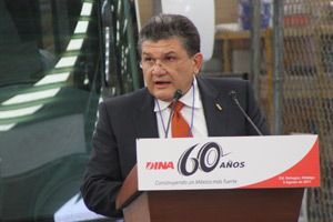 Tenemos, además, la gran responsabilidad de la herencia histórica de conocimiento tecnológico y compromiso social de DINA, con la que debemos ser congruentes, enriquecerla, superarla, y estamos obligados todos a superar. Lo anterior durante la celebración por el 60 aniversario de DINA en esta ciudad.
