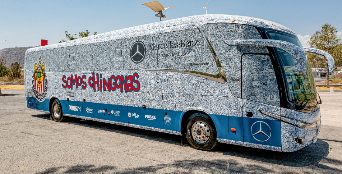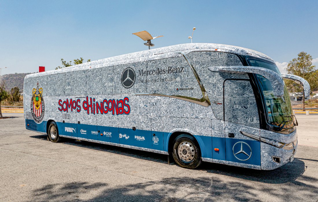Nuevamente el autobús de Mercedes-Benz se viste con la cromática rojiblanca, el cual está configurado con los más altos estándares de calidad, tecnología e innovación para trasladar al equipo femenil de las Chivas del Guadalajara.