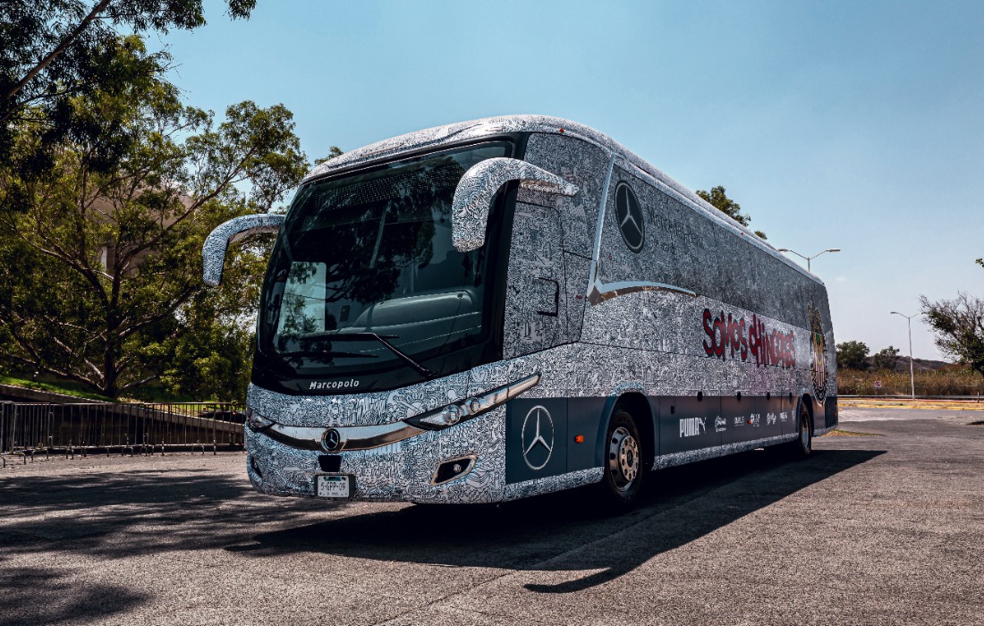 El equipo femenil llegará a sus encuentros a bordo de un robusto autobús de 14 metros de largo, configurado con chasis OC 500 RF 1943 Paradiso1200 con carrocería Marcopolo, así como un motor de última generación BlueTec®5 de bajas emisiones contaminantes y certificación EURO V.