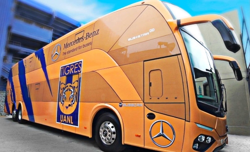 Mercedes-Benz Autobuses entregó al Club Tigres de la UANL un nuevo autobús completamente equipado. Se trata de un Mercedes-Benz con chasis OC 500 RF 2543, motor OM 457 LA, 6 cilindros, 428 hp @ 2,000 rpm, transmisión ZF Astronic automatizada de 12 velocidades, con carrocería Busscar, un impresionante Doble Piso que será el segundo vestidor de este equipo.