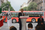 El Jefe de Gobierno de la Ciudad de México, Miguel Ángel Mancera Espinosa, dio el banderazo de salida a 38 autobuses biarticulados, articulados y de entrada baja con tecnología ambiental Euro V, los cuales reforzarán el servicio que reciben usuarios del Sistema Metrobús y que significó una inversión de 215 millones de pesos.