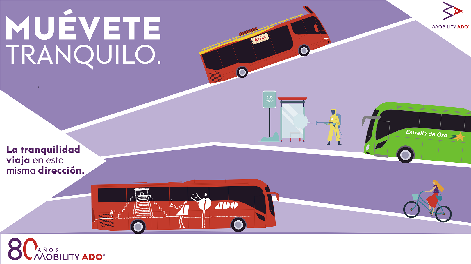 Con el objetivo de alcanzar la Nueva Normalidad de forma gradual y en su compromiso con la salud de los usuarios de las diversas soluciones de movilidad que lo integran, MOBILITY ADO lanza la campaña Muévete Tranquilo, la cual busca promover la corresponsabilidad entre las marcas y los pasajeros para crear una movilidad segura y consciente.
