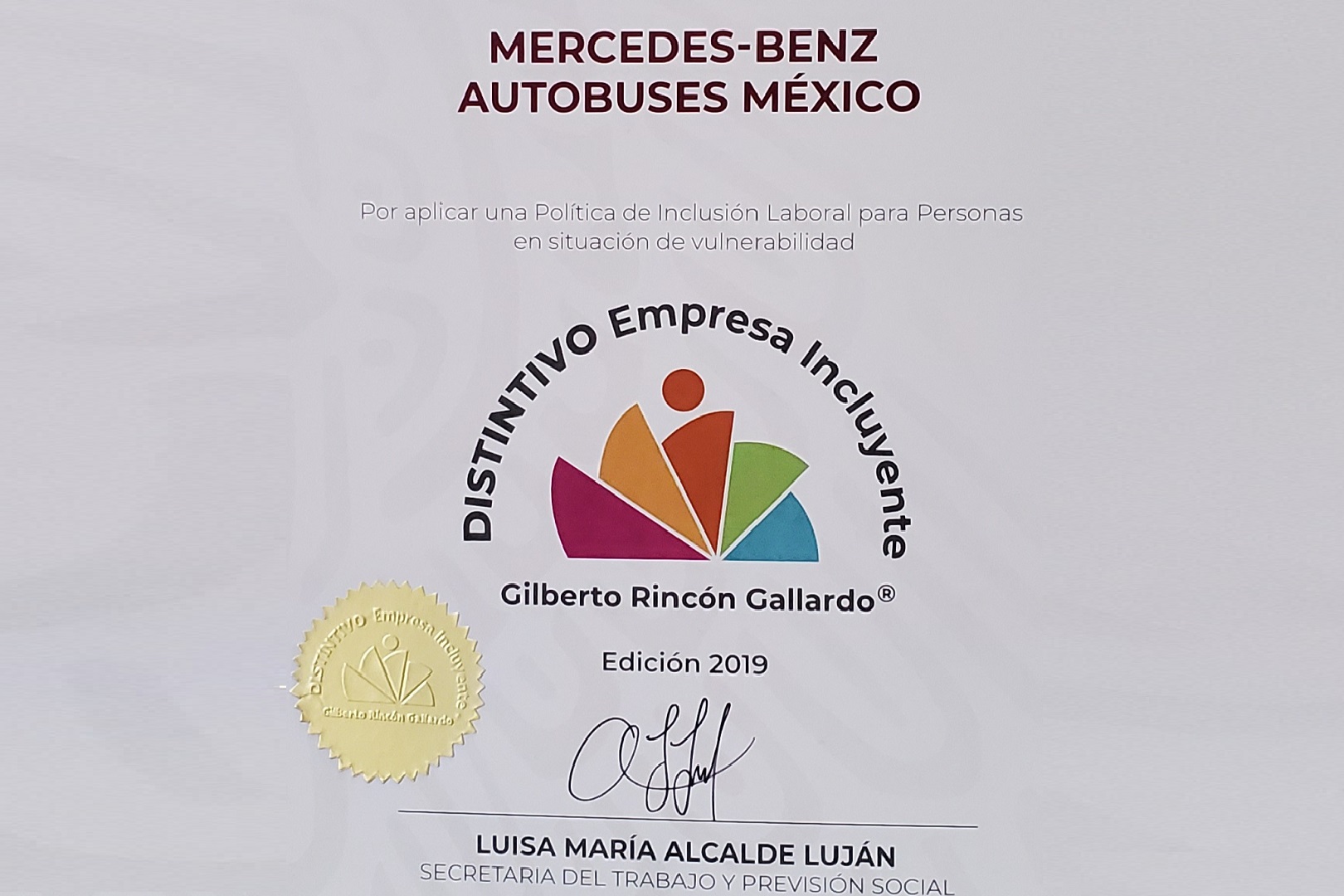Mercedes-Benz Autobuses fue reconocida por segunda ocasión con el Distintivo de Empresa Incluyente Gilberto Rincón Gallardo que otorga el Gobierno Federal a través de la Secretaría del Trabajo y Previsión Social (STPS), por desarrollar acciones que impulsan la cultura de inclusión laboral en México.