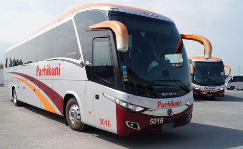 Parhikuni dio el banderazo inicial a cinco buses MP 120 con chasis OC 500 RF1943 de la armadora alemana y carrocería Marcopolo. Tienen capacidad para 46 pasajeros, están equipados con aire acondicionado, baños y el sistema Safety Bus®, un conjunto de tecnologías que brindan la más alta seguridad para los pasajeros y el conductor.