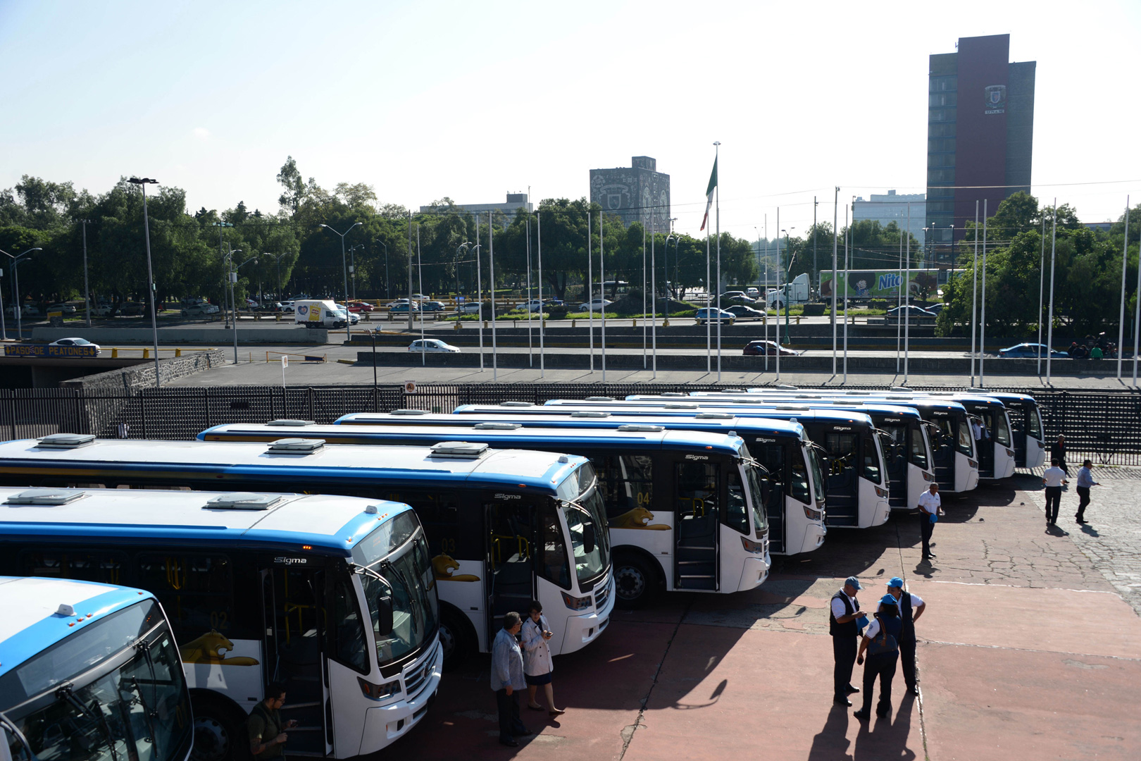 Se trata de unidades Volksbus 15.190 OD, Euro V, con carrocería Ayco, que son parte de la renovación de su flota y estarán circulando en la Ciudad Universitaria con 13 rutas disponibles, más de 100 km de carril confinado, cuentan con circuito cerrado de TV para una mayor seguridad ofreciendo transporte gratuito a estudiantes, dando movilidad a 136 mil estudiantes.