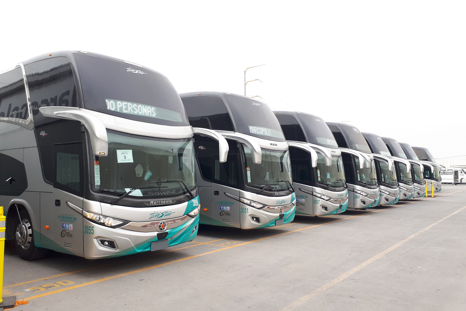 La entrega de este primer lote fueron 11 unidades MAN con carrocería Marcopolo MP 120, 41 unidades piso sencillo MP 135 y 31 unidades Double Decker MP 180, todas son para su línea ETN que serán los primeros en estrenarlas.