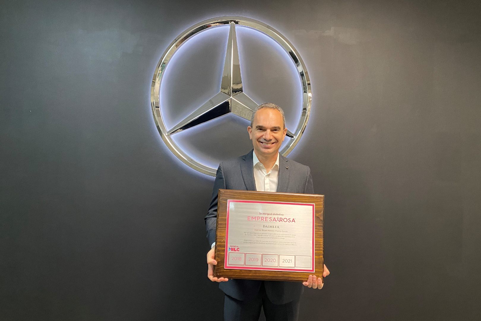 “Recibir nuevamente el Distintivo Empresa Rosa, más que un reconocimiento, es una invitación para continuar con nuestro compromiso para contribuir al bienestar de nuestras colaboradoras y sus familias, quienes día a día trabajan con gran pasión y entrega”, expresó Perla Saucedo, Directora de Recursos Humanos de Mercedes-Benz Autobuses.
