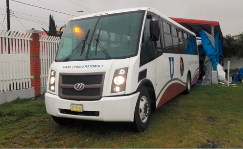 La Universidad Autónoma de Nuevo León y la Preparatoria No.7 recibieron en sus instalaciones un autobús Runner 11 de DINA con tecnología a diesel, el cual está equipado con motor Cummins ISB 6.7, 45 asientos fijos en tela, aire acondicionado, letrero electrónico y accesibilidad universal (escalón retráctil).