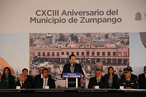 “Feliz cumpleaños a Zumpango, a su pueblo, a su gente, a su gobierno. Estoy muy contento de estar con todas y con todos ustedes hoy en este día muy especial. Se percibe que en Zumpango hay trabajo, hay responsabilidad, se trabaja con honradez y se innova permanentemente”, afirmó Ávila.