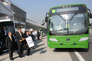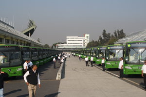 El jefe de Gobierno del Distrito Federal, Marcelo Ebrard, dio el banderazo de salida a 90 autobuses Torino de Mercedes-Benz de alta tecnología, que sustituirán a 226 microbuses en el corredor de Oceanía-Chapultepec donde se trasladarán diariamente 130 mil personas. Con ello se mejora el servicio, se combate la contaminación y se moderniza la flota vehicular de la Ciudad de México.