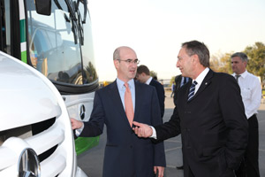 Durante la visita, el vicepresidente de Mercedes-Benz Autobuses, Harald Hauke, encabezó el recorrido por la planta de fabricación de autobuses, habló de la actividad de la compañía en México y ofreció una comida, en la que aseguró: “la visita de la Unión Europea a Monterrey, ciudad en la que tenemos un gran arraigo, confirma la confianza que las autoridades y empresarios de la eurozona tienen en este país. Agradecemos su presencia y esperamos que vuelvan pronto para atestiguar el crecimiento de la compañía, que actualmente brinda empleo a más de 1,000 neoleoneses”.