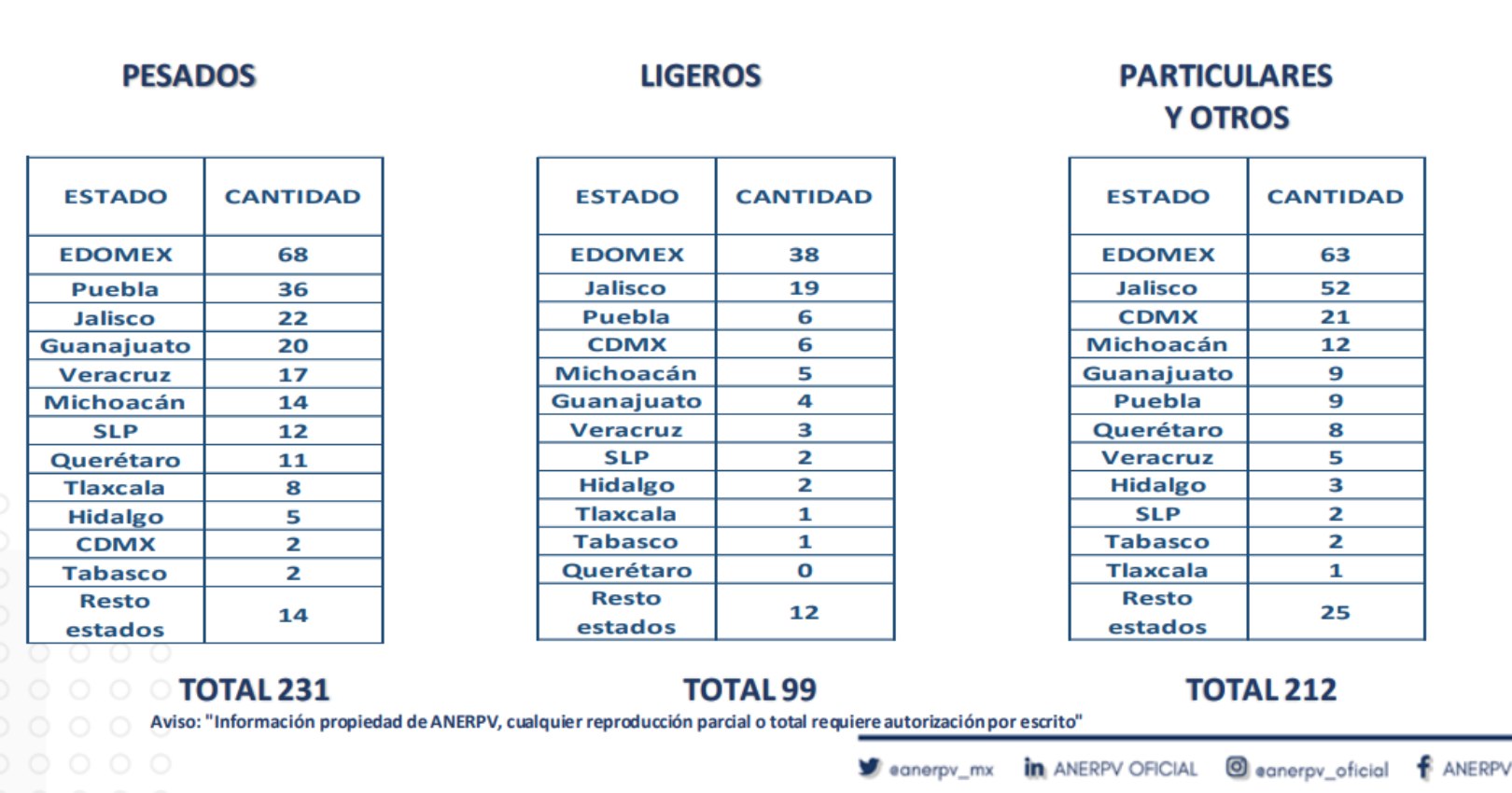 Para contextualizar, durante todo el 2019, el robo de vehículos que reportaron los socios de la ANERPV ascendió a 3,892 unidades. Para el 2020 descendió a 2,912 y el año pasado se ubicó en 2,929 en los doce meses.
