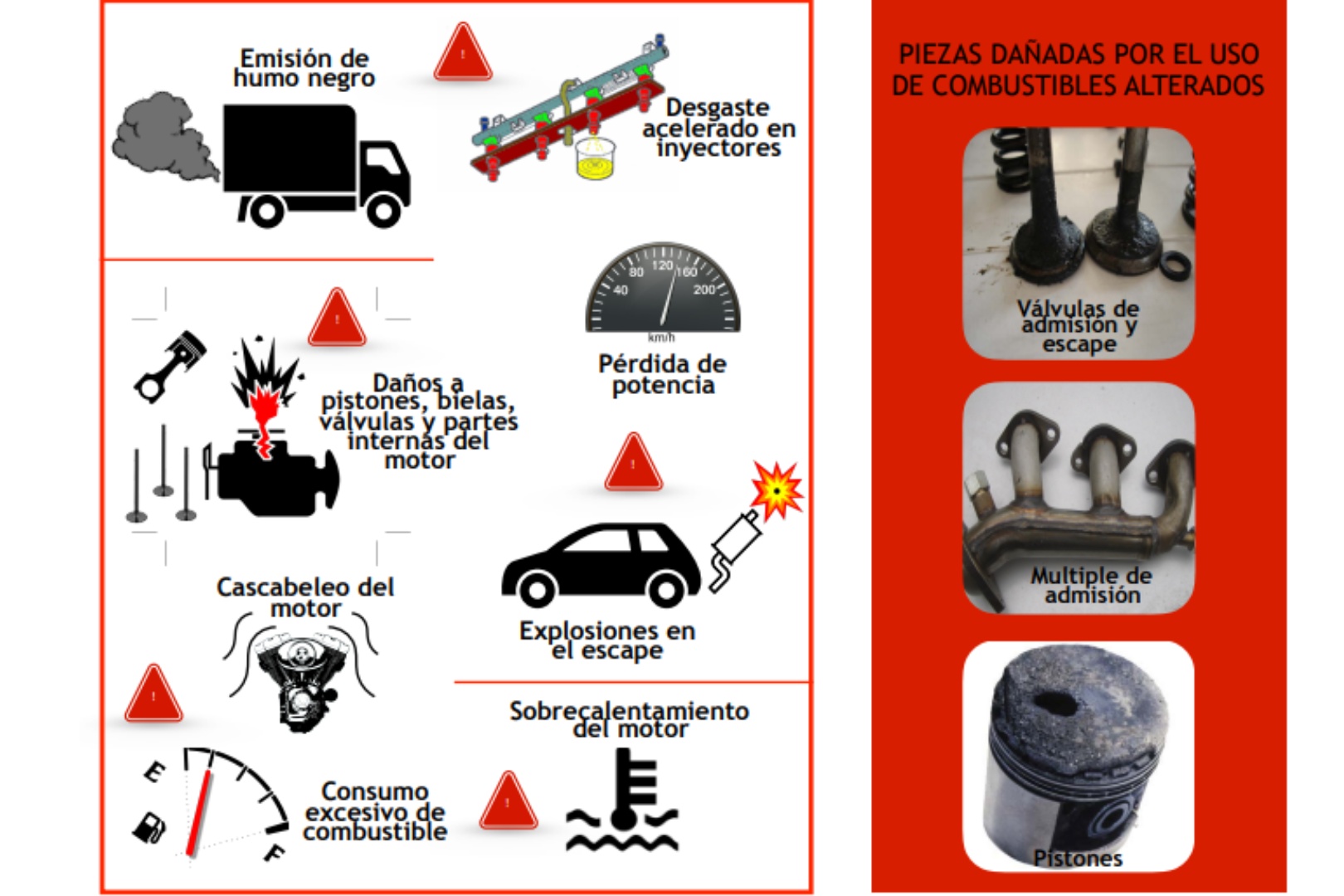 La dependencia recomienda no utilizar combustibles adulterados o modificados, ya que los vehículos no están diseñados para poderlos usar. “Si cambias o modificas el combustible de tu auto o camión, afectarás gravemente la vida del motor, con consecuencias irreversibles que se traducen en pérdidas de dinero y tiempo, y en reparaciones que puedes evitar”.