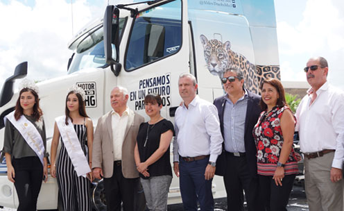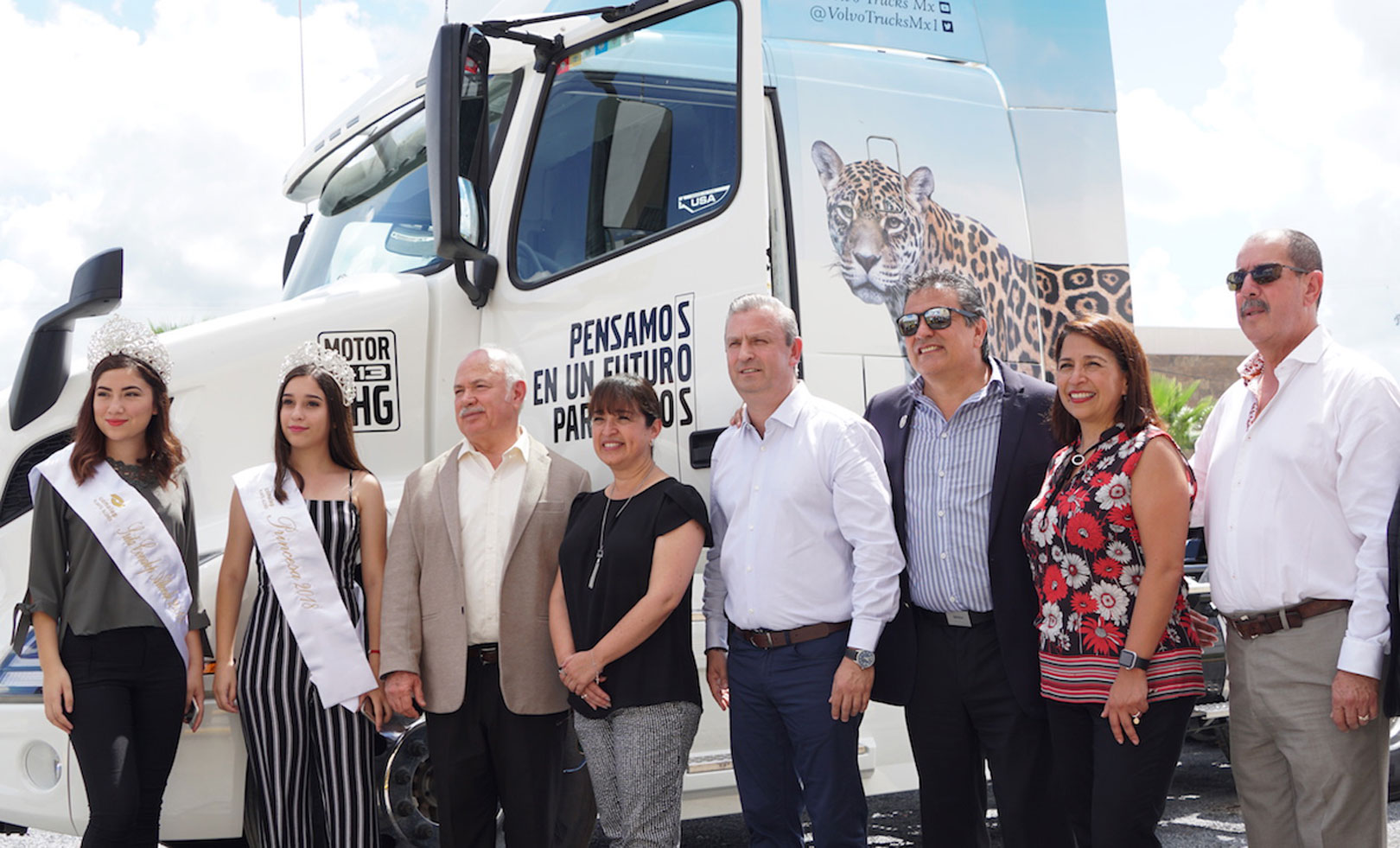 Luz Elena Jurado Soto, Directora General de Volvo Trucks México, acompañada de Enrique González Muñoz, Presidente Nacional de Canacar y del gobernador de Nuevo León, Jaime Rodríguez, entregó en comodato un tractocamión VNL de nueva generación con motor Volvo D13 EPA 10 GHG 17 a directivos del Conalep Allende, para que alumnos de la carrera de operador de camión, así como técnicos mecánicos a diésel continúen con sus estudios.