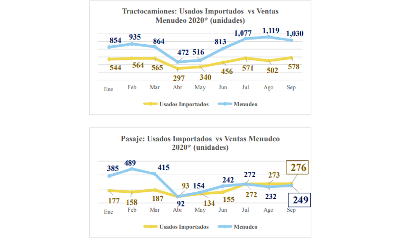 En lo que respecta a la importación de tractocamiones usados, el acumulado de unidades usadas importadas de enero a septiembre 2020 alcanzó 4,417 vehículos, 465 unidades más que lo registrado durante el mismo periodo de 2019, lo que representa un aumento de 11.8%.