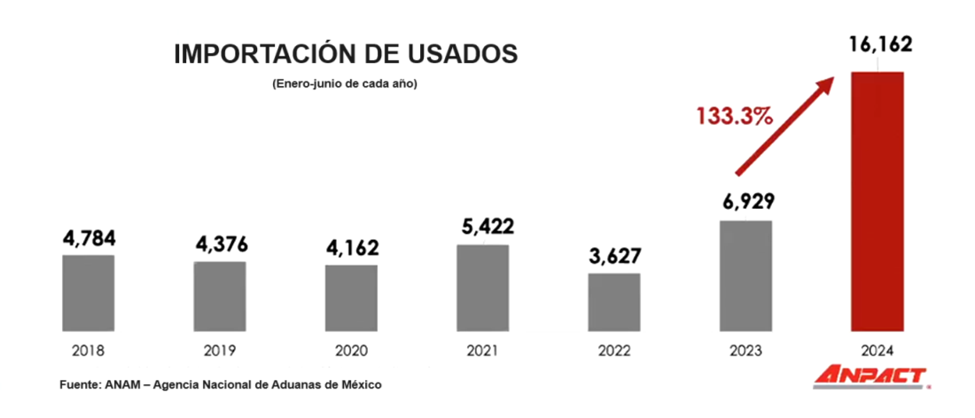 La Asociación Nacional de Productores de Autobuses, Camiones y Tractocamiones (ANPACT) alertó del crecimiento desmedido en la importación de unidades usadas consideradas chatarra, provenientes principalmente de Estados Unidos.