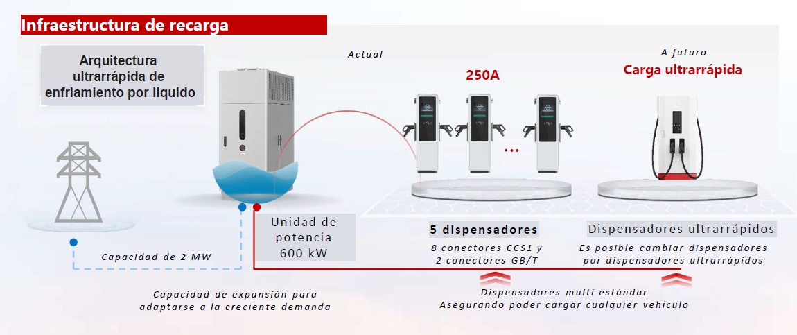 Este sistema se distingue por su alta eficiencia energética y rapidez, atributos fundamentales para garantizar la operatividad de las flotas eléctricas. Con una potencia de 600 kilowatts, Fusion Charge permite la recarga simultánea de hasta 12 vehículos, optimizando el tiempo de espera asegurando una distribución inteligente de la energía, abundó Martínez.