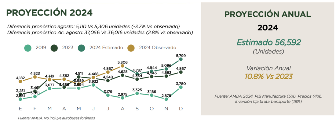 Con un estimado en ventas al menudeo (del distribuidor al cliente en general) de 56 mil 592 unidades en 2024, este año podría cerrar por arriba de las ventas históricas del sector en 2007 cuando se colocaron más de 53 mil 300 automotores de este tipo.