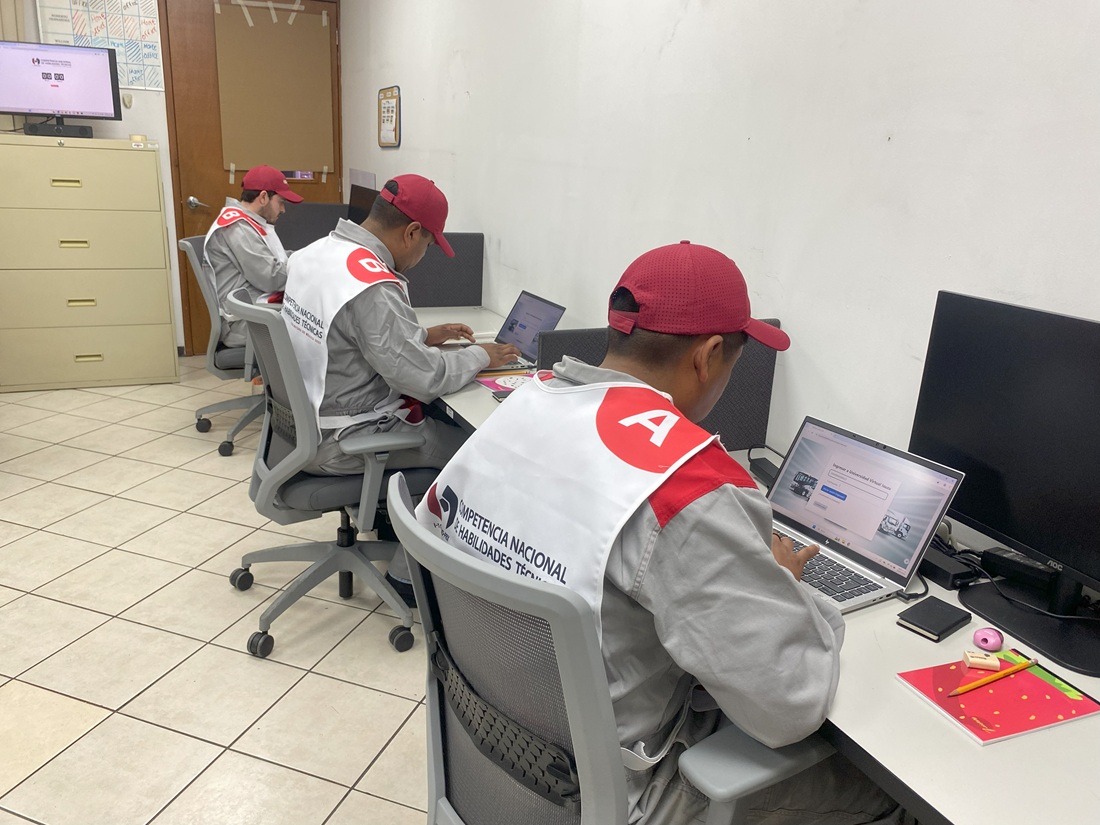 Por su parte, Faustino López, Coordinador de Capacitación y Roberto Hernández, Instructor de Capacitación, explicaron que la competencia consiste en tres pruebas, una escrita y dos prácticas donde los técnicos aplican sus habilidades en cuanto a uso de herramienta de medición e inspección de vehículo. Cada prueba dura 60 minutos.