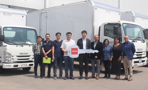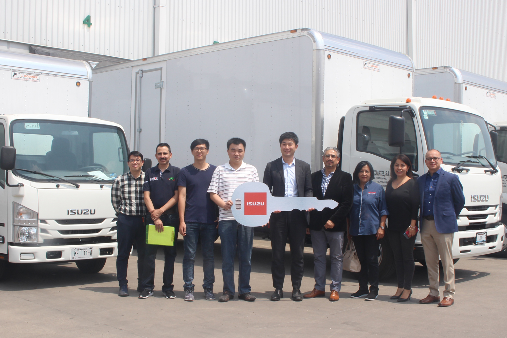 De la mano del Subdirector Comercial de Isuzu Motors de México, Yusuke Ozaki, y los directivos de Isuzu Norte, Roberto Aguilar y Gamaliel Torres, la empresa Optimo Autopartes recibió cinco unidades, de los cuales tres son ELF 300 y dos Forward 800.