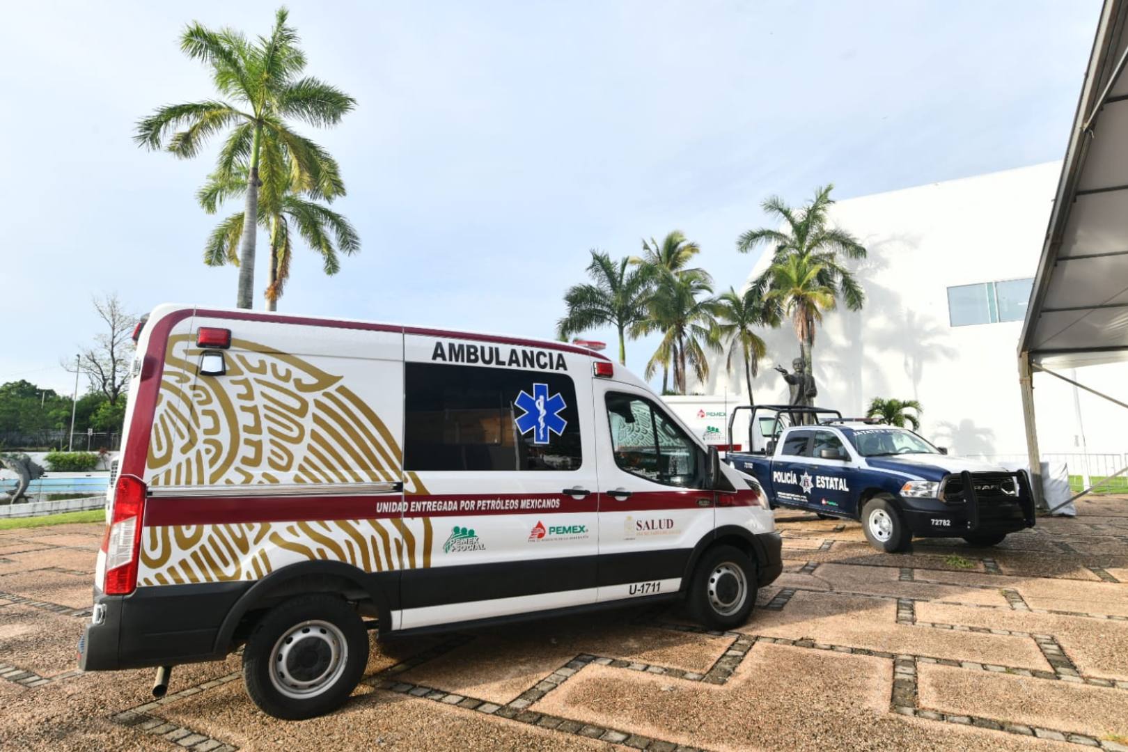 De esas unidades, ocho son patrullas para la Secretaría de Seguridad y Protección Ciudadana; dos vehículos de desazolve combinado (Vactors) para la Comisión Estatal de Agua y Saneamiento y tres ambulancias de traslado que la Secretaría de Salud destinará a los Hospitales de Cárdenas y de Cunduacán, así como al Servicio Estatal de Urgencias. Cabe señalar que esas 13 unidades entregadas al gobierno que encabeza el capitán Carlos Manuel Merino Campos, significan un monto de 30 millones de pesos.