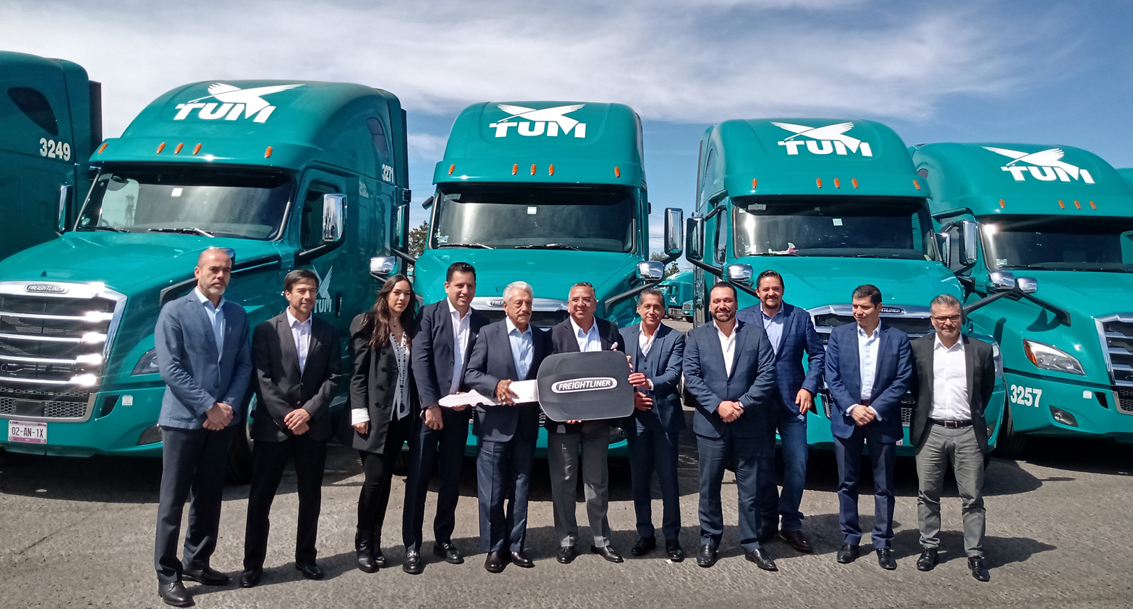 El evento tuvo la presencia de Miguel y Marcelo Quintanilla, Presidente Ejecutivo de TUM; Flavio Rivera, Presidente y Director de Daimler Vehículos Comerciales en México; Claudio de la Peña, Director de Ventas y Mercadotecnia de Daimler Trucks México; Fernando Zapata, Director Comercial de Grupo Zapata, entre otros directivos, fueron los encargados de entregar en esta nueva flota en las instalaciones de TUM, en la zona de San Martín Obispo, en el Estado de México.