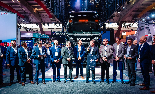 Puebla, Puebla. Luego de que Scania México lanzara en Expo Transporte ANPACT 2022 su nuevo tren motriz “Super”, el nuevo y último desarrollo a diésel para camiones, la armadora sueca realizó la entrega simbólica de 690 vehículos de este tipo en los primeros días de haber iniciado el evento, a cinco socios estratégicos del sector de transporte de mercancías y logística.
