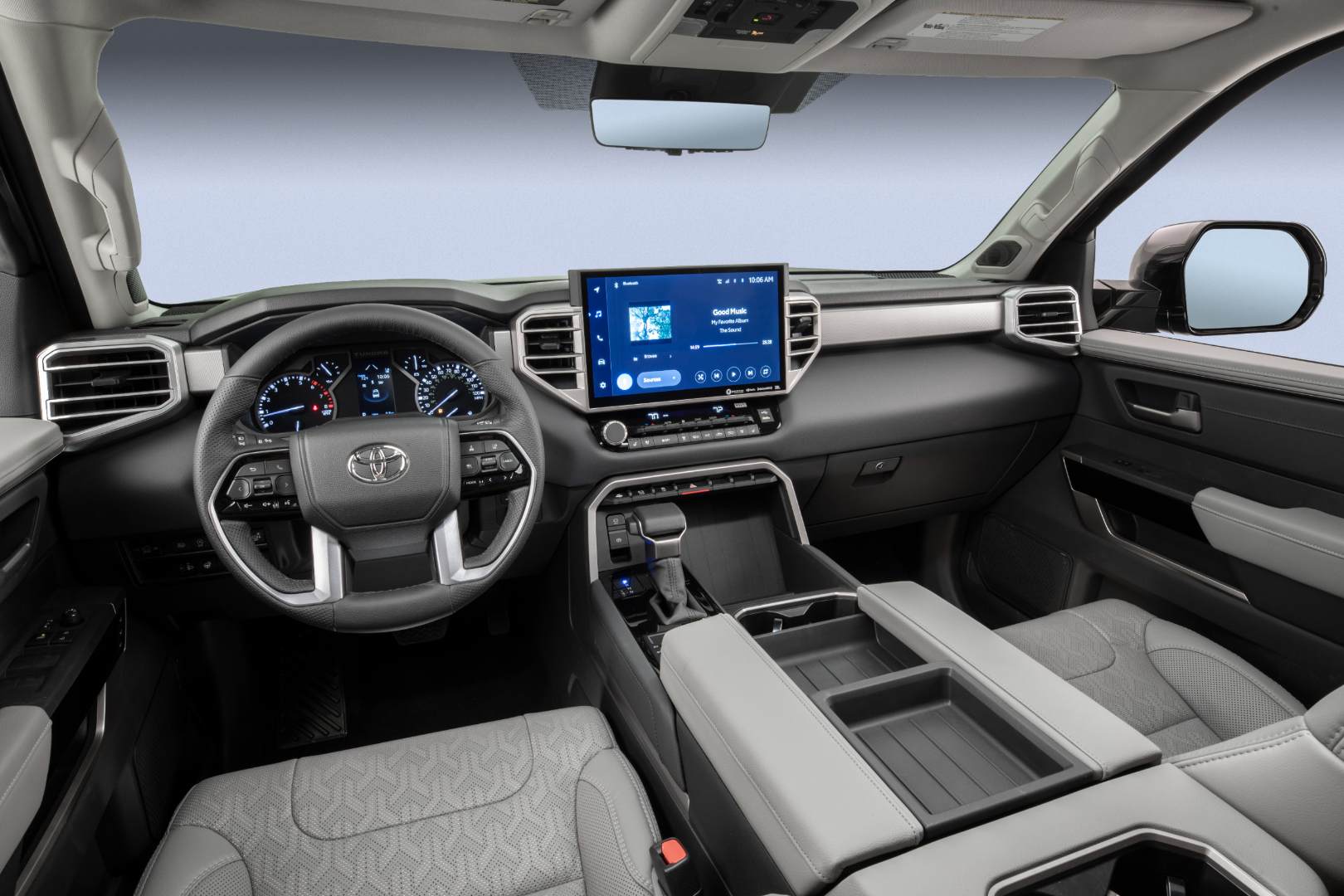 Por último, Tundra será el primer auto de la marca en dar la bienvenida al nuevo sistema de audio multimedia diseñado y desarrollado por el equipo Toyota en Texas: pantallas táctiles de nuevo diseño, interacción mejorada a través de la activación visual, táctil y por voz. Además, cuenta con una pantalla táctil estándar de 8 pulgadas o 14 pulgadas y compatibilidad inalámbrica estándar con Apple CarPlay y Android Auto.