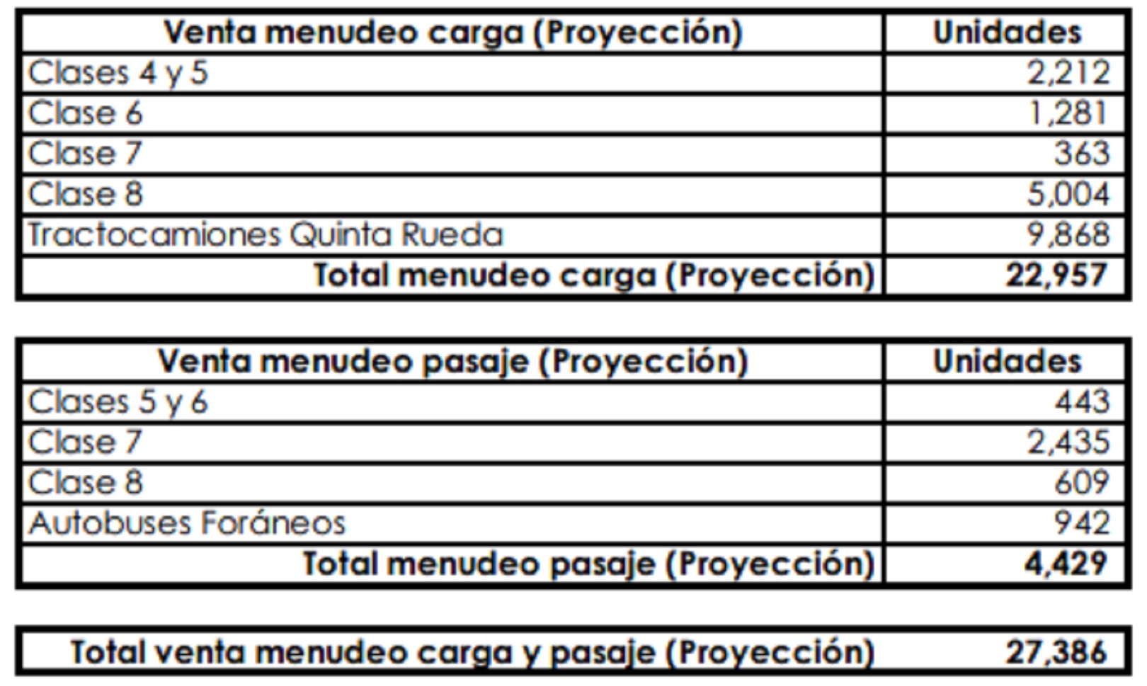Por su parte, la venta al menudeo para este año sería, de acuerdo a la proyección semestral de la Asociación, de 27,386 unidades, que en relación al cierre de ventas del 2019 que fue de 42,010 pesados, implicaría una caída del 34.8%.