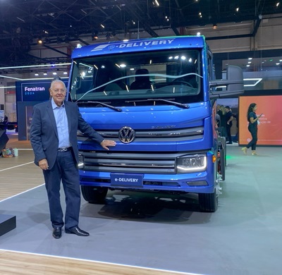 Sao Paulo, Brasil. Volkswagen Camiones y Buses lanzó en Fenatran el nuevo e-Delivery de 11 toneladas, reafirmando su compromiso con el desarrollo constante de la movilidad eléctrica para ofrecer aún más disponibilidad, eficiencia y rendimiento. El vehículo está equipado con un nuevo motor eléctrico de 280 kW, que proporciona un aumento del torque del 7%, con 2.300 Nm disponibles desde el principio.
