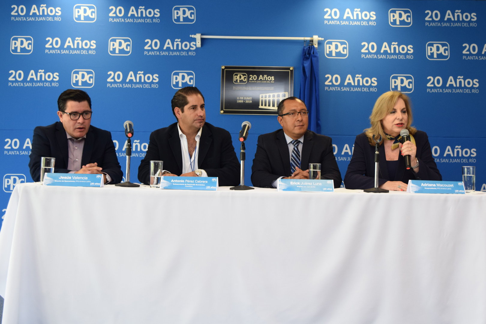 En la ceremonia de aniversario número 20 de la planta participaron Adriana Macouzet, Vicepresidenta de PPG para América Latina; Antonio Pérez Cabrera, Subsecretario de Desarrollo Económico de Querétaro y Pacheli Isidro Demeneghi Rivero, Secretario de Desarrollo Económico de San Juan del Río, quienes celebraron la apuesta de PPG por la innovación en el estado de Querétaro, durante dos décadas de generación de desarrollo y de crecimiento para el talento local.