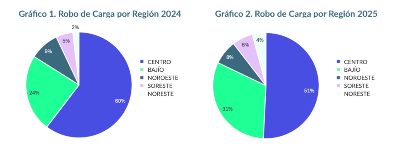 En 2025, el 82% de los robos de carga en el país se concentró en sólo diez entidades, con el Estado de México y Puebla a la cabeza, acumulando juntos el 38% de la incidencia nacional, 21% y 17%, respectivamente.