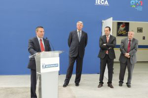 El presidente de Michelin en Norte America, Pete Selleck; el director general de Michelin en México, Mike Boggs y el director general del Instituto Estatal de Capacitación (IECA) en Guanajuato, inauguraron la Escuela de Mantenimiento de la empresa francesa de neumáticos, instalada al interior del Centro Especializado de Alta Tecnología del IECA en León.