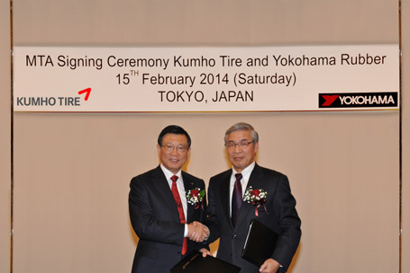 La ceremonia de firmas se celebró en presencia del Presidente Park Sam-Koo del Grupo de empresas de Kumho Asiana, presidente Tadanobu Nagumo de Yokohama Rubber y partes interesadas de la industria llantera en Weihai Point en China.