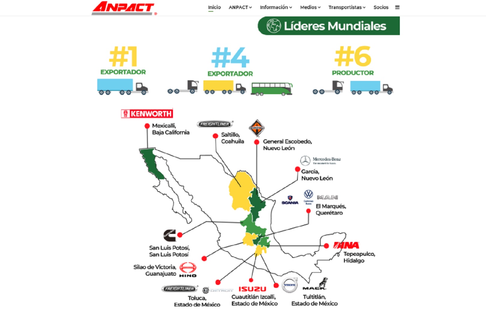 Desde 1992, ANPACT representa a la industria automotriz de vehículos comerciales de carga y pasaje, así como motores, integrada por las empresas DINA, Freightliner, Hino, International, Isuzu, Kenworth, Mack Trucks, MAN Trucks & Bus, Mercedes-Benz Autobuses, Scania, Volkswagen Camiones y Autobuses, Grupo Volvo, Cummins y Detroit Diesel que cuentan con 11 plantas en ocho estados de la República.