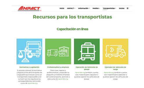 El transportista podrá encontrar en la sección Transportistas cursos en línea e información encaminada a fortalecer la profesionalización del autotransporte. En la sección de Información, los visitantes podrán encontrar leyes, normativas y estadísticas oportunas sobre el sector.